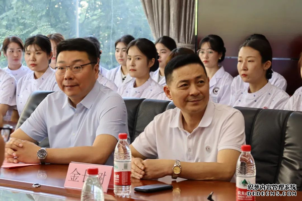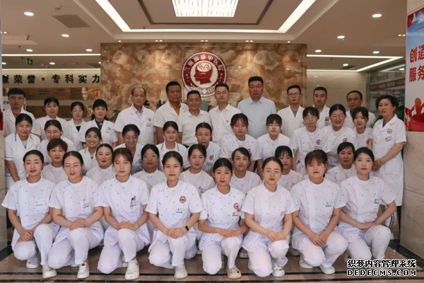 (金长树理事长、魏凡凯主任与医院职工合影留念)