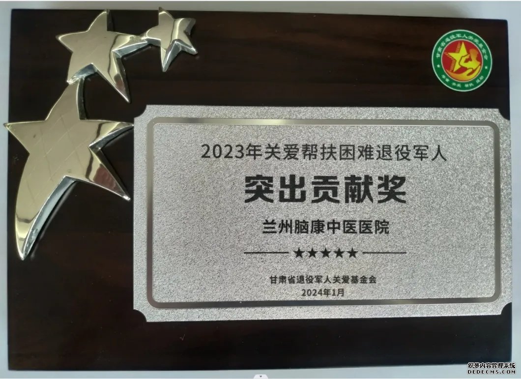 热烈祝贺兰州脑康中医院荣获-2023年度甘肃省退役军人关爱帮扶“突出贡献奖”