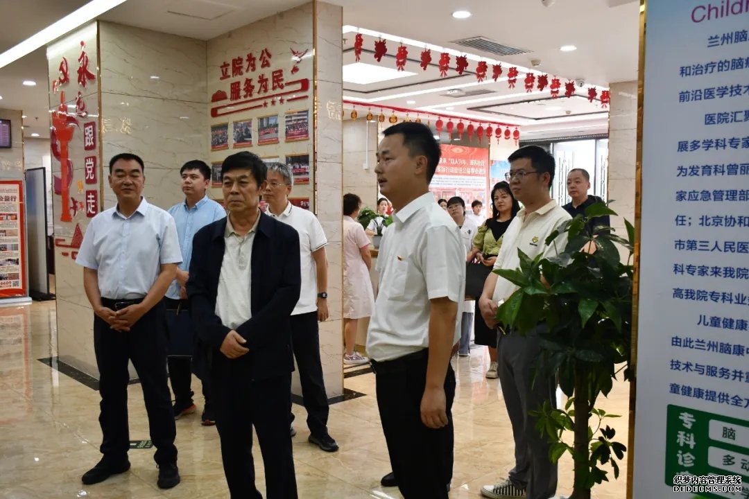 调研过程中,我院院长引导中国退役军人关爱基金会秘书长张培祥、综合部主任黄志聪、业务主管许愿以及甘肃省退役军人事务厅党组成员、副厅长杨元庆、思想权益处处长魏凡凯、甘肃省退役军人关爱基金会副理事长金长树、石岱鑫等一行,参观了医院特许专家栏、医院荣誉墙、医院锦旗墙、临床诊疗区、临床诊查区、临床治疗区、中医特色治疗区、住院部四病区、退役军人关爱病房、党建文化馆等区域,并介绍了我院在专家水平、医疗技术、服务质量及社会责任等方面的不懈追求与卓越成就。