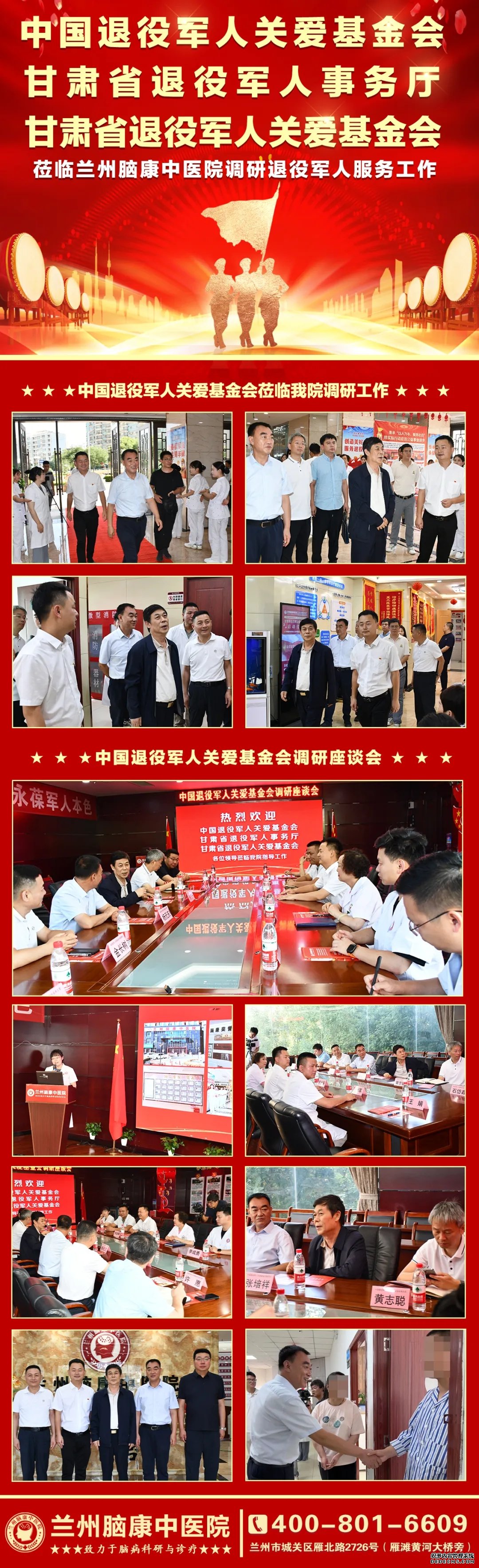 此次调研活动不仅加深了兰州脑康中医院与中国退役军人关爱基金会、甘肃省退役军人事务厅、甘肃省退役军人关爱基金会之间的沟通与联系,更为医院在退役军人服务领域的工作指明了方向、增添了动力。医院将以此次调研为契机,继续秉承“以退役军人为中心”的服务理念,不断创新服务模式、提升服务质量、拓宽服务领域,为退役军人提供更加全面、优质、高效的医疗健康服务,为构建和谐社会、促进军民融合发展贡献更大的力量。